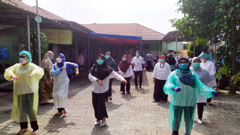 Aktivitas Puskesmas Ditengah Pandemi, Para Pegawai Dan Pasien Berjemur Bersama Di Bawah Sinar Matahari