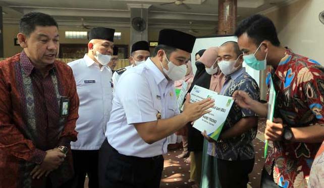Metrobanten – Wali Kota Tangerang Arief R. Wismansyah menyerahkan uang santunan sebesar Rp42 Juta kepada ahli waris Guru Ngaji yang meninggal dunia yang menjadi peserta Jaminan Kematian BPJS Ketenagakerjaan (BPJAMSOSTEK).