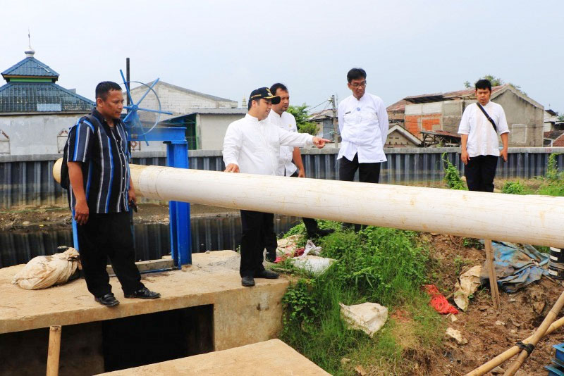 Terus menyusuri sepanjang turap, Arief melakukan pengecekan kembali beberapa titik pompa air di sepanjang Perumahan Garden City Residence.