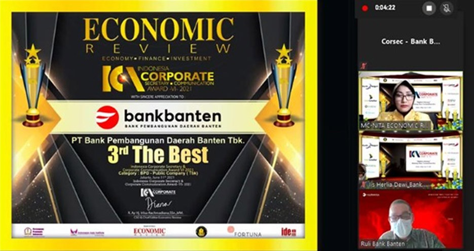 Metrobanten, Serang – Upaya Bank Banten dalam membangun reputasi Perusahaan itu mendapatkan apresiasi dengan dinobatkannya sebagai 3rd The Best kategori BPD – Public Company (Tbk) dalam ajang Indonesia Corporate Secretary & Corporate Communication Award 2021 (ICCA-VI-2021) yang diselenggarakan oleh Economic Review secara virtual pada Jumat (11/6).