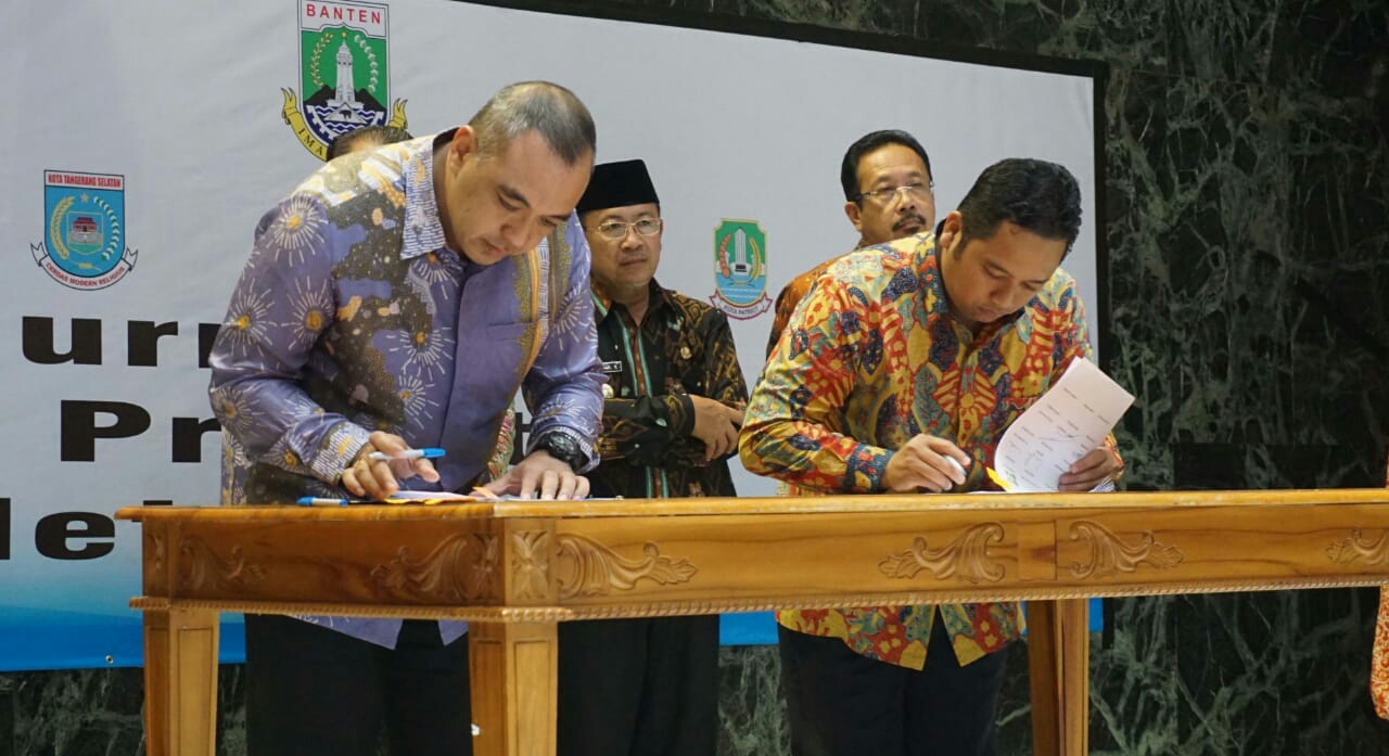 Metrobanten, Kota – Pemerintah Kota Tangerang melakukan penandatanganan perjanjian kerjasama dengan Pemerintah Provinsi DKI Jakarta dan Badan Kerjasama Pembangunan ( BKSP) Jabodetabekjur tentang pembangunan sistem informasi ketahanan pangan.