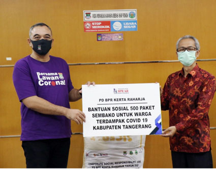 Bupati Tangerang, A Zaki Iskandar mengucapkan terima kasih atas kepedulian dari PD BPR KR yang telah membantu Pemerintah Kabupaten Tangerang dengan memberikan paket sembako untuk masyarakat Kab. Tangerang dan peralatan APD lengkap untuk petugas medis.