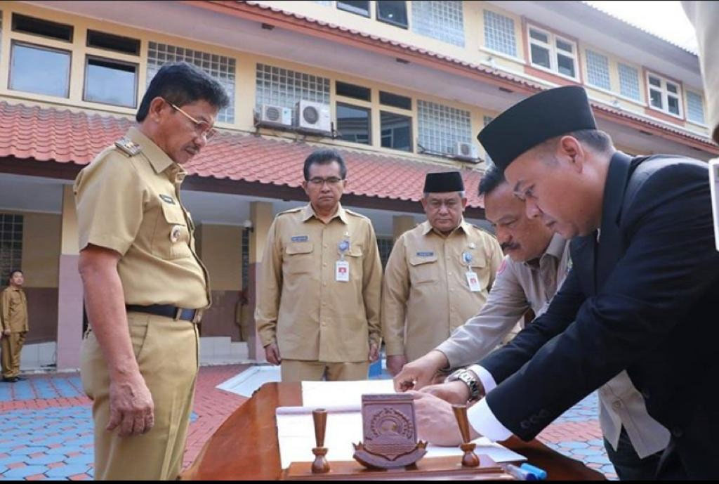 Metrobanten, Kota – Wakil Walikota Tangerang Sachrudin melantik Direktur Umum (Dirum) PDAM Tb Kota Tangerang Doddy Effendi usai apel pagi di Puspem Kota Tangerang, Kelurahan Sukarasa, Kecamatan Tangerang, Kota Tangerang, Senin (10/2/20).
