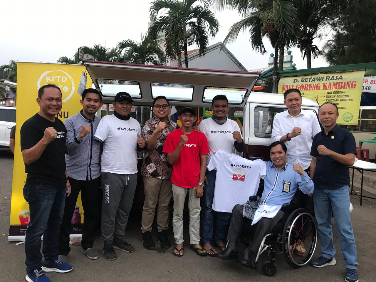 Metrobanten, Tangsel – Tenaga Ahli Madya Kedeputian V Kantor Staf Presiden Sunarman Sukamto dan Fahd Pahdepie, Selasa (4/9/19) mengunjungi ‘mobile cafe’ Kito Rato yang digagas tiga anak muda penyandang disabilitas di BSD, Tangerang Selatan (Tangsel).