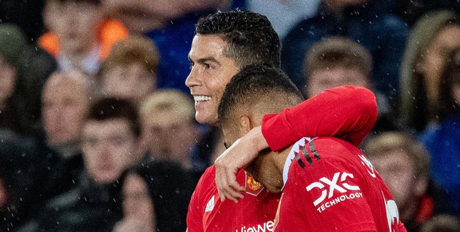 Pemain depan Prancis itu digantikan oleh Ronaldo, yang memastikan United unggul sebelum turun minum ketika ia berpadu mulus dengan Casemiro untuk berada di belakang pertahanan The Toffees dan mencetak gol bersejarahnya.