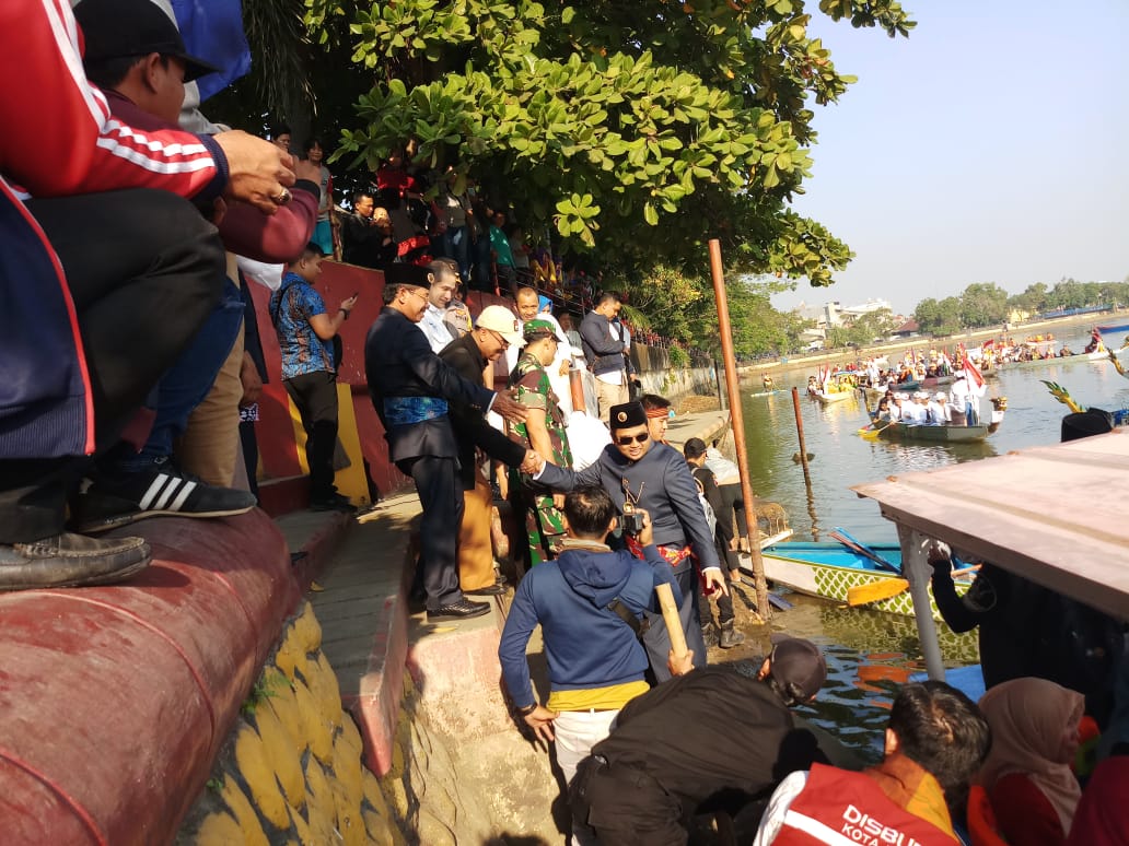 Metrobanten, Kota – Pembukaan Festival Cisadane 2019 akhirnya dimulai, dengan menaiki Perahu naga dari Jalan Kalipasir rombongan Walikota Tangerang H Arief R Wismansyah, Wakil Walikota Tangerang H Sachrudin, Kapolres Metro Tangerang Kota, Dandim 0506/TNG beserta rombongan menuju ke Jalan Benteng Makasar.