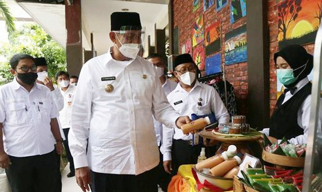 Dengan tetap menjaga protokol kesehatan, Gubernur berinteraksi dengan para siswa yang menunggu stan tersebut. Tidak lupa Gubernur mengapresiasi karya inovasi siswa tersebut dengan cara memesan salah satu produk yang disediakan di stan tersebut. “Saya pesan (roti, red) seratus ya,” ujar WH.