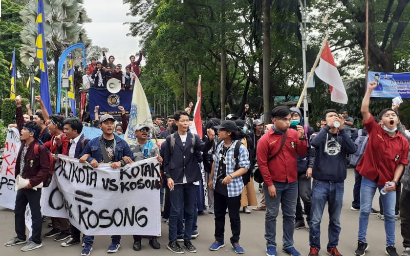 Dalam aksinya, mahasiswa menyampaikan empat tuntutan di antaranya,