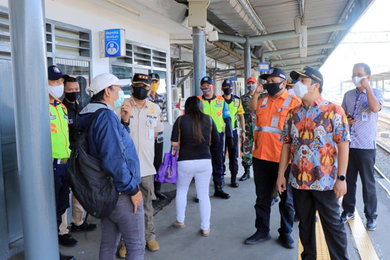 Wali Kota Tangerang H. Arief R. Wismansyah bersama dengan Kadishub Kota Tangerang Wahyudi Iskandar dan Kasatpol PP Kota Tangerang Agus Hendra meninjau Stasiun Tangerang yang menjadi salah satu akses keluar dan masuk Kota Tangerang.