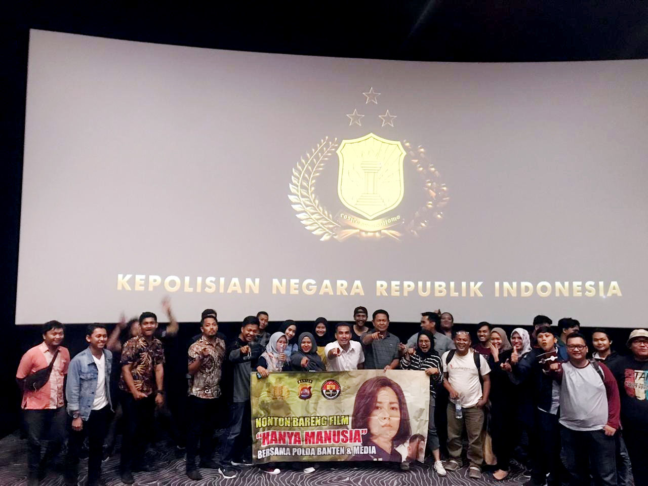 Metrobanten, Banten – Keluarga besar bidang Hubungan masyarakat (Humas) Polda Banten bersama forum wartawan Polda Banten menggelar nonton bareng (nobar) film Hanya Manusia di Cinemaxx – Mall Of Serang, Jum’at, (8/11/19).