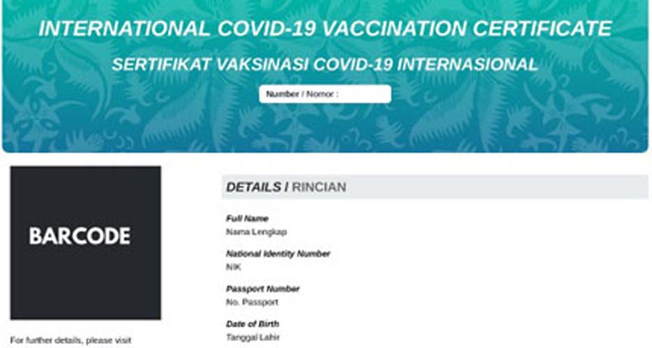 Chief of Digital Transformation Office Kemenkes, Setiaji menyampaikan bahwa bentuk dan informasi yang tertera pada sertifikat vaksin internasional sudah disesuaikan dengan standar WHO, termasuk kode QR yang tercantum di dalamnya agar bisa terbaca dan diakui di luar negeri.