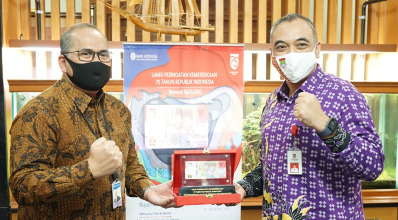 Metrobanten, Tangerang,- Kepala Perwakilan Bank Indonesia Banten Erwin Soeriadimadja menyerahkan langsung uang pecahan uang kertas Rp 75.000 edisi khusus kemerdekaan RI ke-75 kepada Bupati Tangerang Ahmed Zaki Iskanda, bertempat ruang kerjanya di Gedung Bupati Tangerang Jl H Soma Winata No. 1 Tigaraksa, Kamis (27/8/20).