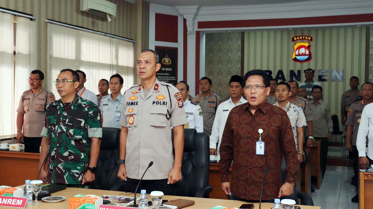 Dari Mapolda Banten Vicon dipimpin langsung Wakapolda Banten Brigjen Pol Drs. Tomex Korniawan, didampingi Irwasda Polda Banten Kombes Pol Drs. I Nyoman Labha Suradnya, M.M pejabat utama Polda Banten beserta seluruh kepala Instansi terkait di Provinsi Banten.