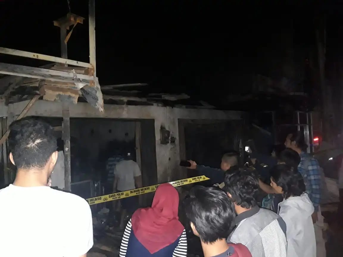 Korban pasutri tersebut, Sakinah (25) tewas terpanggang dan Sopian (25) dilarikan ke rumah sakit. Kebakaran dipicu karena dagangan bensin eceran yang dijual di warung kelontong itu tersambar api lilin saat korban sedang memindahkan bensin kedalam botol eceran.