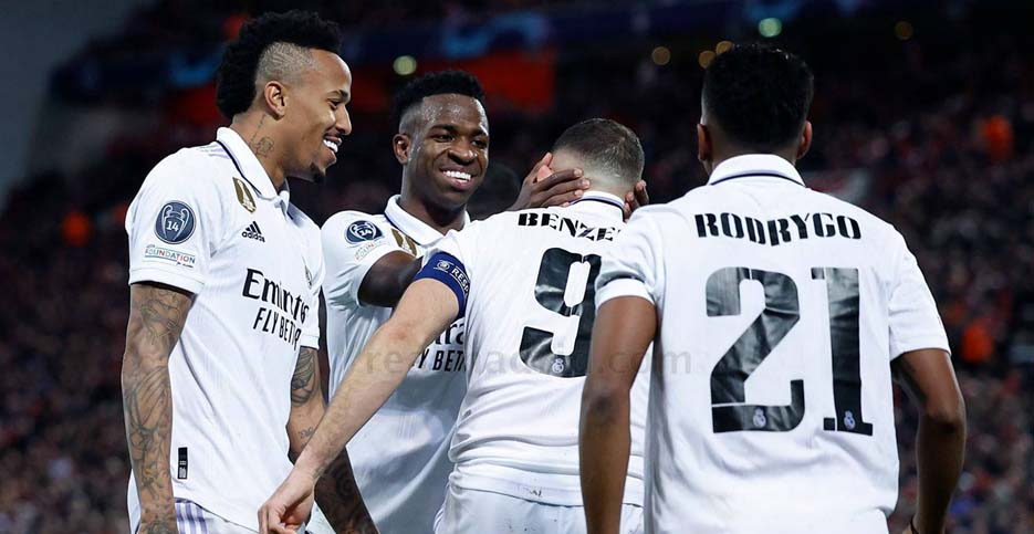 Vinicius Junior mencetak dua gol sebelum jeda untuk membatalkan keunggulan awal Liverpool dan tiga gol tak terjawab di babak kedua, dua di antaranya dicetak oleh Karim Benzema membuat tim Jurgen Klopp mengalami kekalahan kandang terberat mereka dalam sejarah Liga Champions.
