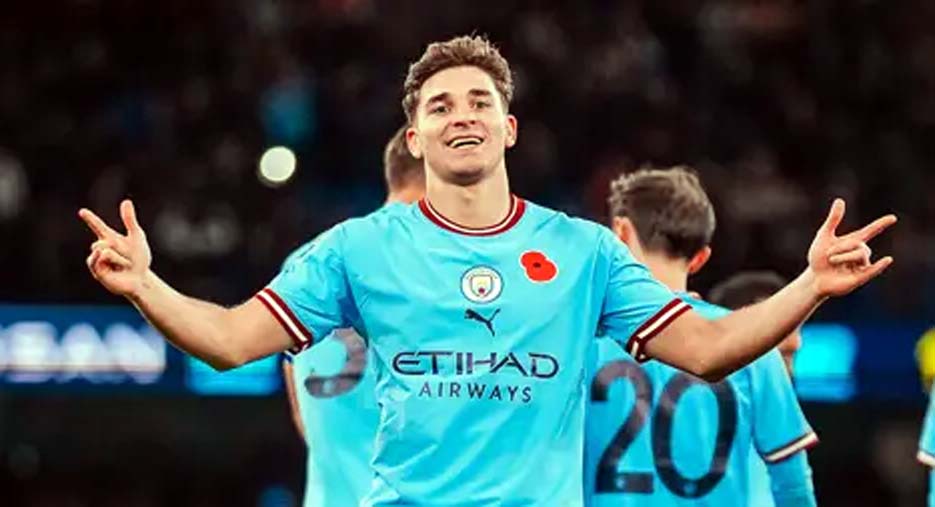 Lima menit kemudian, City menambahi gol kedua dengan gerakan tajam. Umpan silang Alvarez yang luar biasa memilih Mahrez , yang memotong ke dalam dan ketika tembakan mendatarnya diselamatkan, peringatan Alvarez ditempatkan dengan sempurna untuk mengarahkan pulang untuk gol ketujuh musim ini.