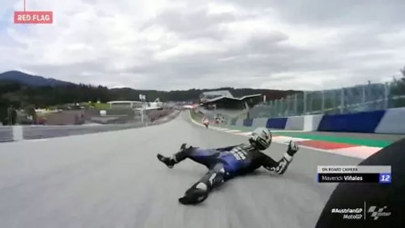 Alhasil, Vinales pun terjatuh dari motor balapnya. Beruntung tak ada pembalap lain yang melaju tepat di belakang Vinales, sehingga The Top Gun tak tertabrak. Sementara itu, motor balap Vinales terus melaju lurus hingga menabrak pembatas dan terbakar.
