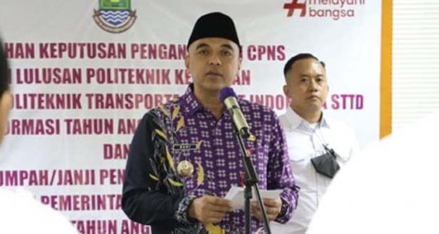 Bupati sekaligus menyerahkan keputusan pengangkatan CPNS dari lulusan Politeknik Keuangan Negara STAN dan Politeknik Transportasi Darat Indonesia STTD formasi tahun 2022.