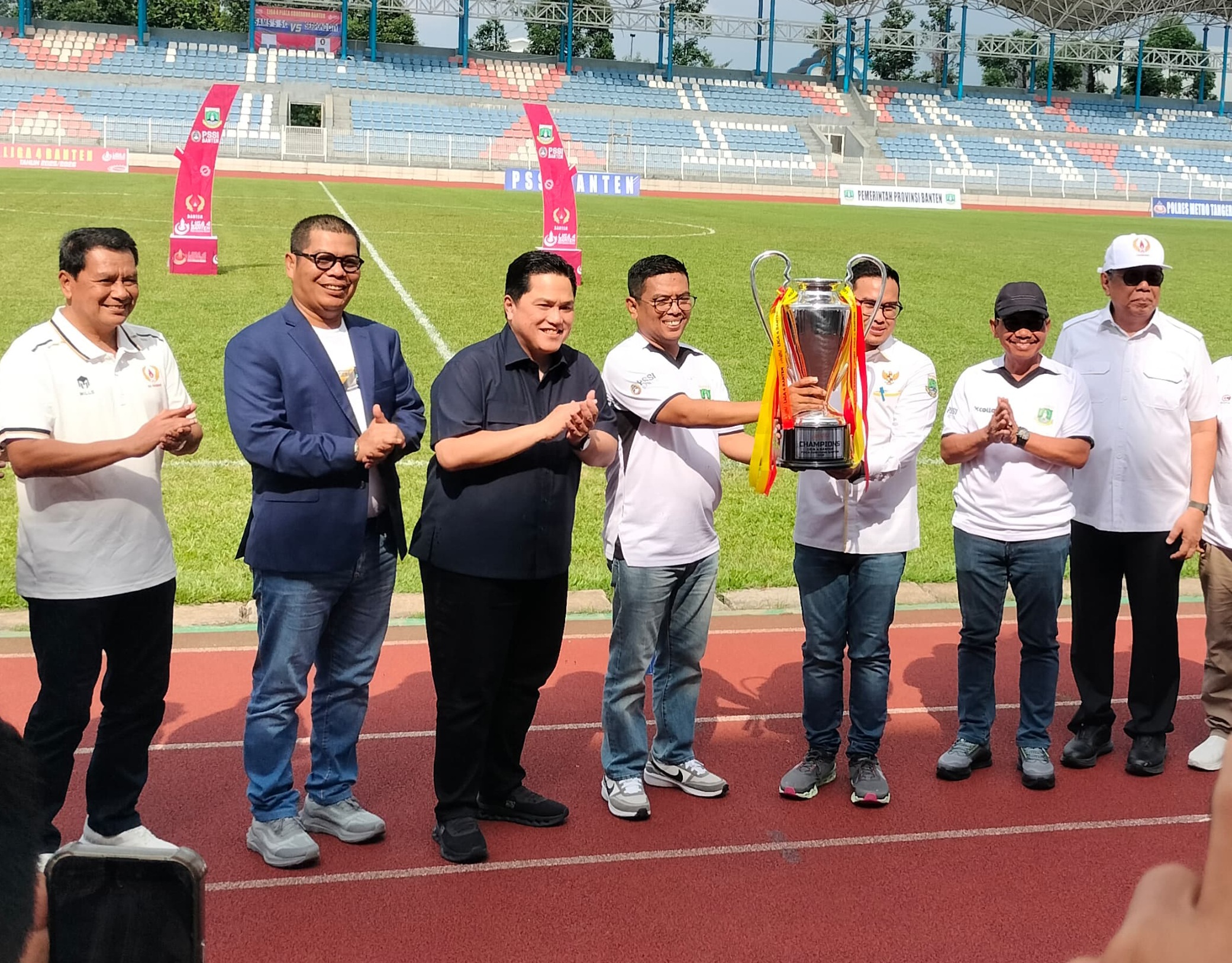 Metrobanten – Ketua Umum Persatuan Sepak Bola Seluruh Indonesia (PSSI) Erick Thohir membuka secara resmi Liga 4 Piala Gubernur Banten di Stadion Benteng Reborn, Kota Tangerang pada Minggu, 29 Maret 2026.