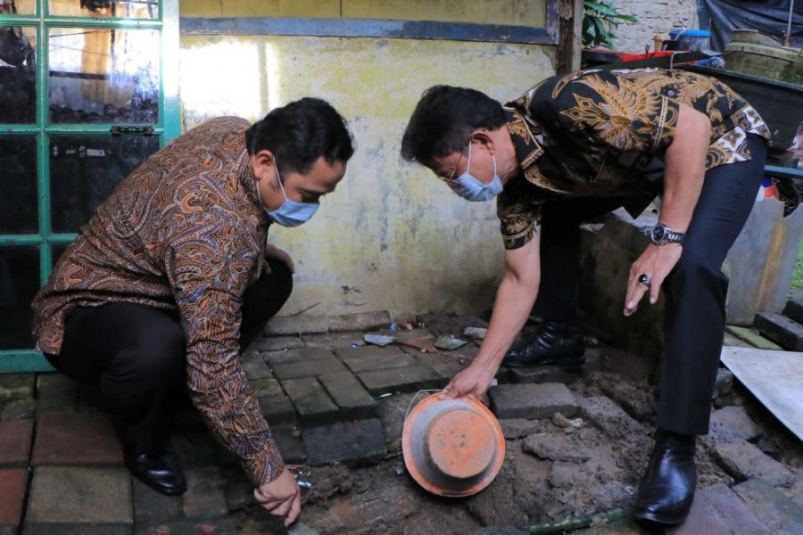 Wali Kota Tangerang Arief R Wismansyah, Wakil Wali Kota Tangerang Sachrudin dan Sekda Kota Tangerang Herman Suwarman memulai program bedah rumah dengan meletakan adukan semen pertama di salah satu rumah warga yang bertempat di Jalan Kyai Haji Maulanan Hasanudin, Kelurahan Poris Gaga, Kecamatan Bauceper, pada Kamis, 11 Februari 2021.