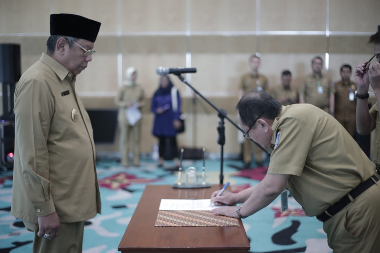 Serah terima jabatan (sertijab) dan tandatangan fakta integritas dipimpin langsung Wakil Walikota Tangsel Benyamin Davnie, Senin (16/9/19).