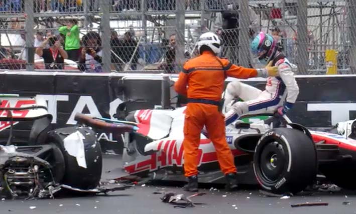 Schumacher dengan cepat keluar dari mobil dan bisa berjalan pergi – dengan Haas sekarang melihat tagihan perbaikan yang besar dan kuat menjelang balapan berikutnya di Baku.
