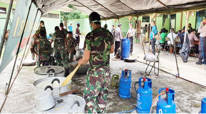 Setiap harinya dapur umum TNI Polri ini menyiapkan sebanyak 1000 nasi bungkus dan akan dilaksanakan selama 20 hari.