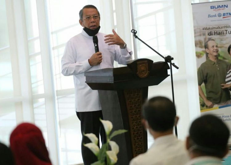 Metrobanten, Tangsel – Wakil Walikota Tangerang Selatan, Benyamin Davnie sampaikan sambutan dalam acara Sosialisasi Pengembangan Pengelolaan Keuangan dan rencana Perumahan Pegawai bekerjasama dengan Bank BTN di Ruang Lengkong Lt.4 Puspemkot Tangsel, Ciputat, Rabu, (29/7/2020).