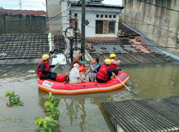 Petugas Gabungan Intensifkan Evakuasi Warga di Titik Banjir