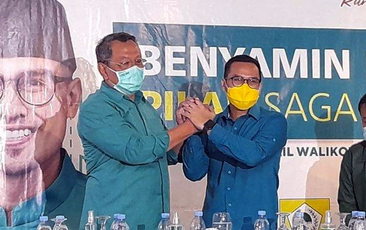 Pasangan calon Wali Kota dan Wakil Wali Kota Tangerang Selatan Benyamin Davnie-Pilar Saga Ichsan sontak merayakan kemengan mereka di Pilkada Tangerang Selatan 2020.