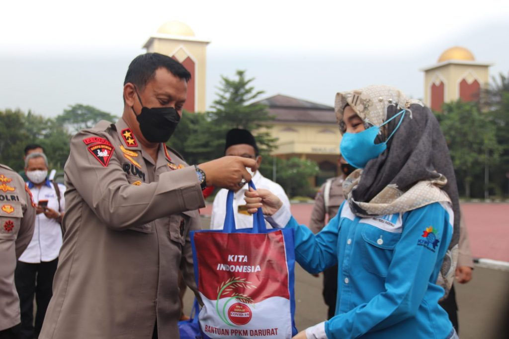 Polda Banten Bagikan 1.200 Paket Sembako Kepada Buruh dan Pekerja.