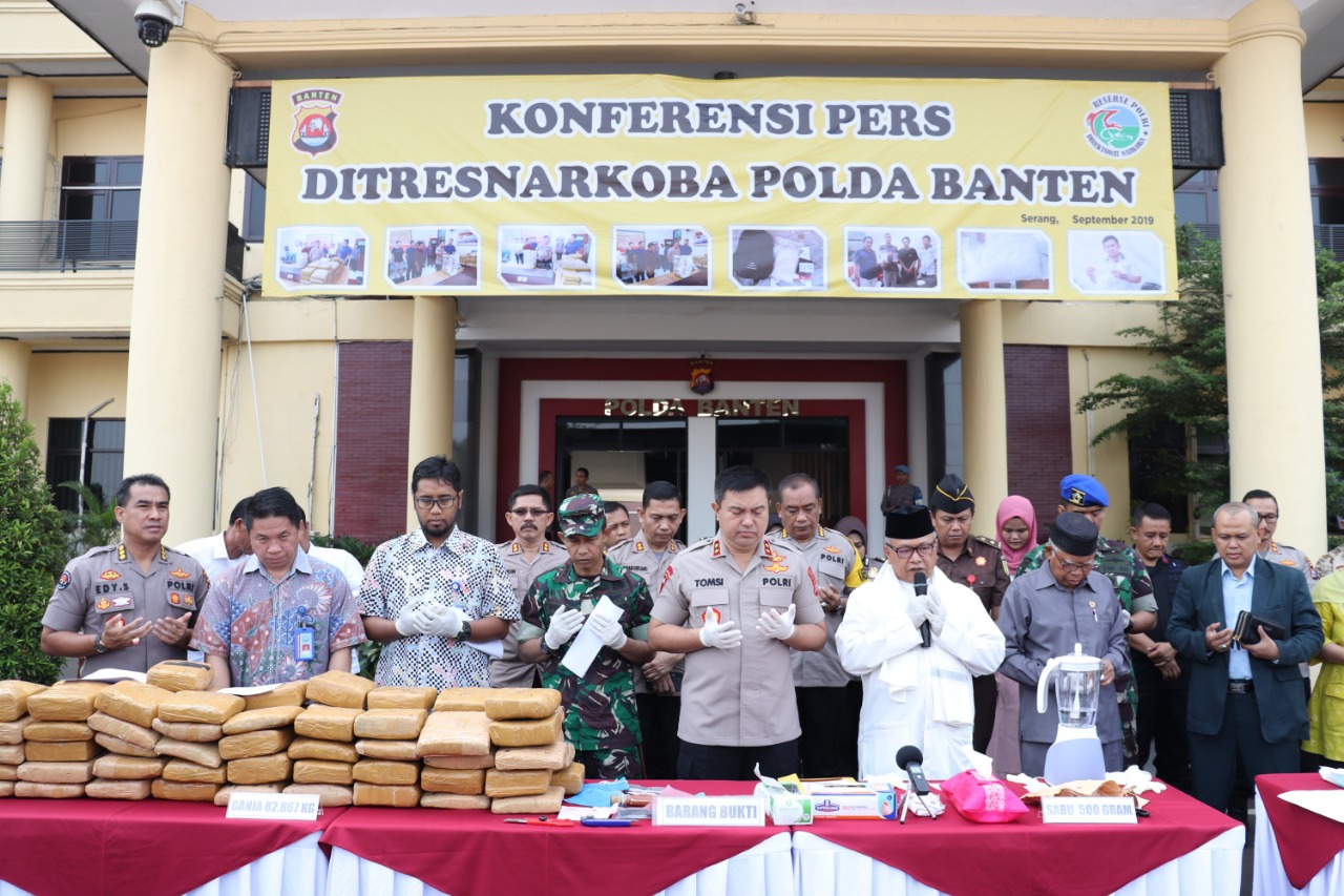 Kapolda Banten Irjen Pol. Tomsi Tohir, Msi mengatakan, pemusnahan ganja yang berat total 86,867 kilogram tersebut, merupakan hasil pengembangan Polda Banten atas penangkapan ME di sekitar Terminal Pakupatan, Kelurahan Panancangan, Kecamatan Cipocok Jaya, Kota Serang pada Sabtu (7/9/19) lalu dengan barang bukti 500 gram sabu.