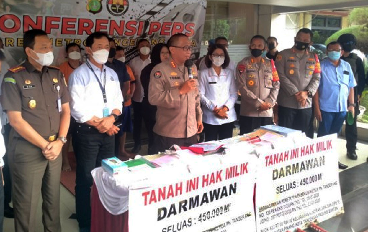 Metrobanten, Tangerang – Polres Metro Tangerang Kota berhasil mengungkap kasus sengketa lahan seluas 45 hektare di Kecamatan Pinang, Kota Tangerang yang sempat menjadi perseteruan. Kepolisian menetapkan dua orang menjadi tersangka.