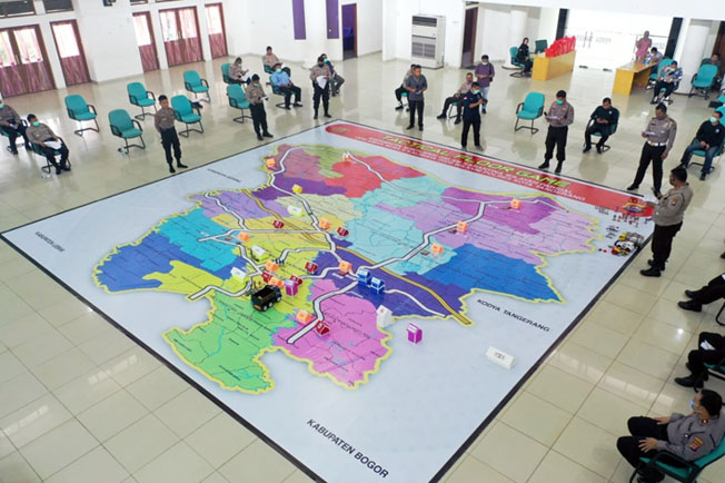Metrobanten, Kabupaten – Menghadapi pandebmi wabah virus corona (covid-19) yang hampir melanda seluruh dunia termasuk Negara Indonesia, Polda Banten dan Polres Jajaran melakukan pelatihan Tactical Floor Game (TFG) dalam upaya Sistem Pengamanan Kota (sispamkota) dan menghadapi kontijensi.