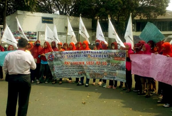 Puluhan Buruh Demo Pabrik Garment di Tangerang