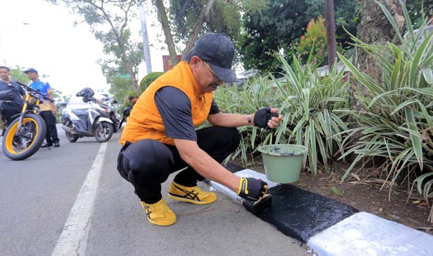 Sachrudin Bersama ASN Melakukan Pengecatan Kanstin Trotoar