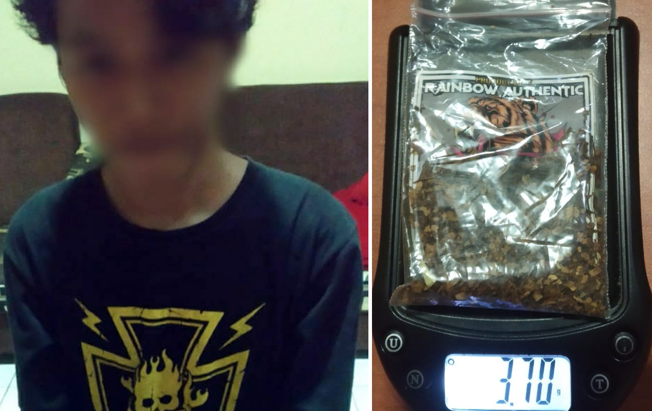 “Sebanyak 1 bungkus plastik klip bening yang dibungkus plastik sachet warna gold yang berisikan Narkotika yang diduga jenis tembakau gorilla seberat 3,70 gram dan sebuah handphone android merk Oppo warna putih berhasil kita amankan dari tangan tersangka,” kata Shilton kepada awak media, Sabtu 3 Oktober 2020.