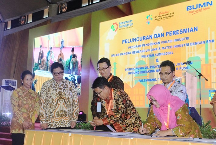 Hal tersebut disampaikan Menteri Perindustrian Airlangga Hartarto pada acara Peluncuran Program Pendidikan Vokasi yang link and match antara industri dengan Sekolah Menengah Kejuruan (SMK) untuk wilayah Sumatera Bagian Selatan di PT. Pupuk Sriwijaya Palembang, Jumat (11/5/18).
