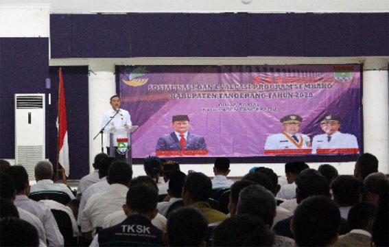 Demikian dikatakan Kepala Dinas Sosial Kabupaten Tangerang, Ujat Sudrajat saat menyampaikan laporan pada acara Sosialisasi dan Evaluasi Program Sembako dari Program Bantuan Pangan Non Tunai (BPNT) Kabupaten Tangerang Tahun 2020 yang dikuti Kepala Desa, Lurah, Camat dan dinas terkait di Gedung Serba Guna (GSG) di Tigaraksa Kabupaten Tangerang pada Rabu (11/3/2020).