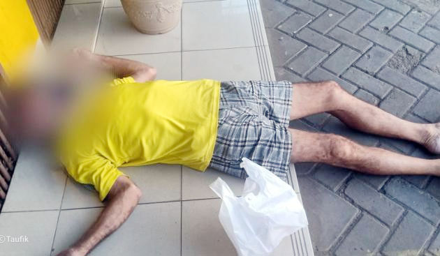 Seorang kakek ditemukan terlentang dalam keadaan tewas di depan Apotek Roxy, Jalan Beringin,Perumnas 1, Kelurahan Nusa Jaya, Kecamatan Karawaci, Kota Tangerang, Minggu (19/7/2020)