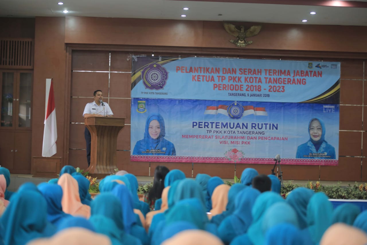 Pelantikan dilakukan secara langsung oleh Wakil Ketua I TP PKK Provinsi Banten Hj. Ade Rosi Khairunnisa Andhika kepada Hj. Aini Suci Wismansyah sebagai ketua TP PKK Kota Tangerang periode 2018 – 2023.