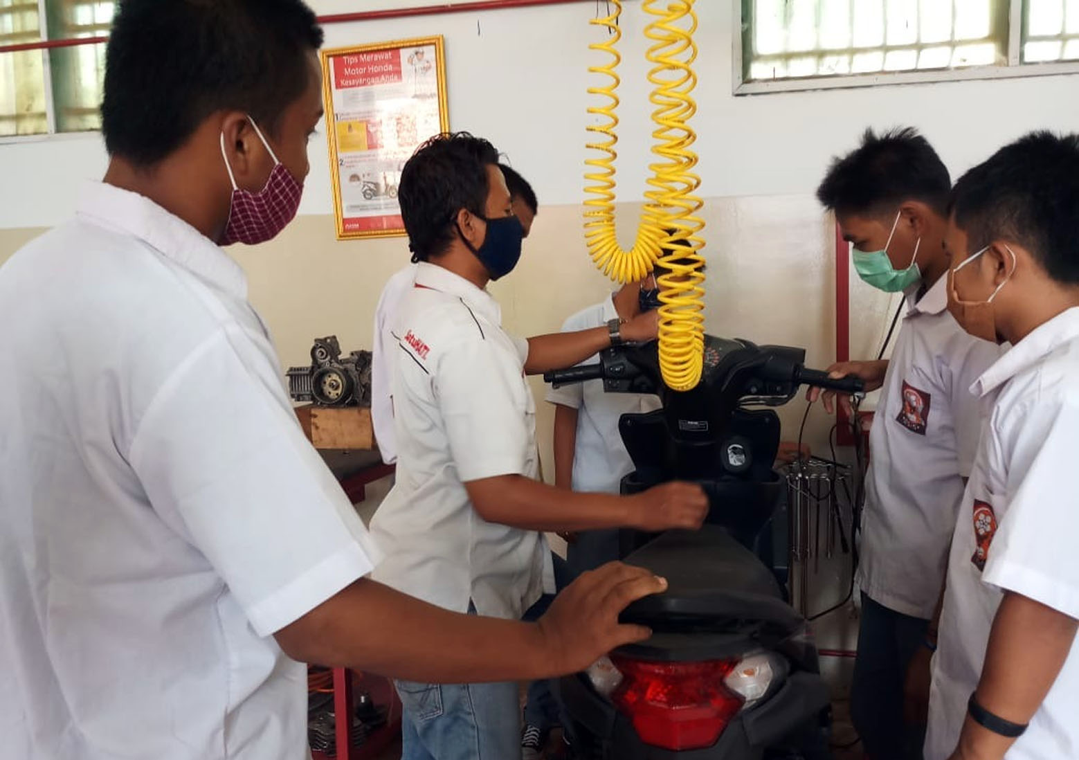 Sementara, guru pembina Bagian tehnical training instruktur pengajar dari Wahana Honda Herman Novendri menuturkan para siswa diberikan pengajaran cara service sepeda motor dan mengenai bongkar pasang spare part motor.