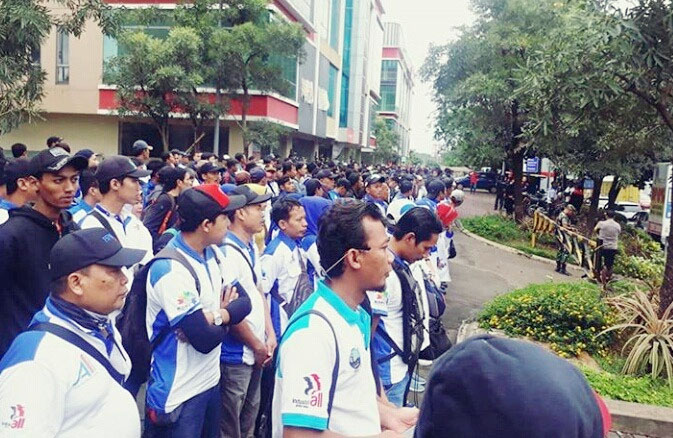 Para buruh mantan pekerja PT Bentoel Tangerang Jl. KH Hasyim Ashari Cipondoh itu menolak PHK yang dilakukan perusahaan atas alasan pailit.