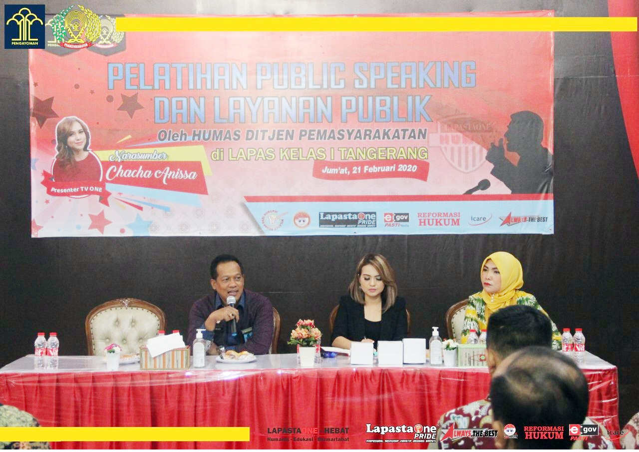 Metrobanten, Kota – Tingkatkan pelayanan publik, Kepala Lapas (Kalapas) Kelas 1 Tangerang Jumadi membuka Kegiatan Publik Speaking dan Pelayanan Publik bekerjasama dengan Direktorat Jenderal Pemasyarakatan (Ditjenpas) di Lapas Kelas 1 Tangerang, Jumat (21/2/20).