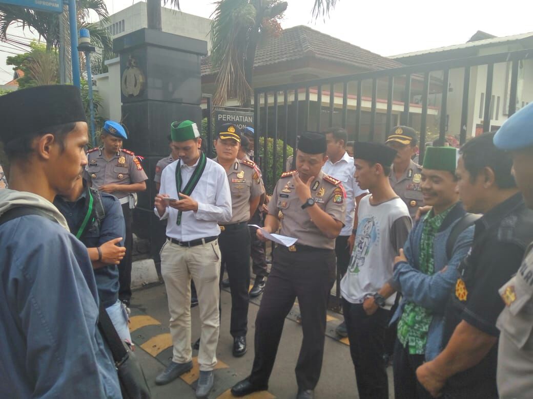 Tak lama berselang, Kapolres Metro Tangerang Kota, Kombes Pol Harry Kurniawan menghampiri serta menanggapi para peserta aksi yang sedang melakukan sejumlah Teatrikal berkenaan dengan peristiwa 21 Mei 2018 di Istana Negara.