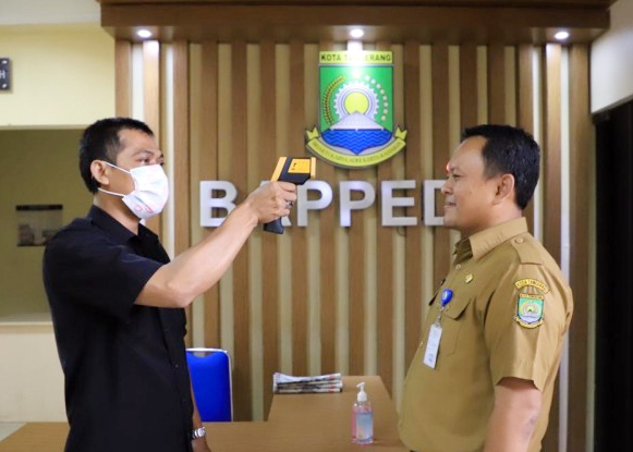 Bappeda tak sekadar menyediakan hand sanitizer akan tetapi turut menyediakan pengecekan suhu tubuh.