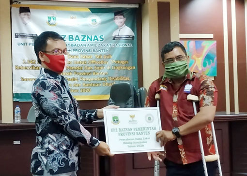 Metrobanten, Banten – Unit Pengumpul Zakat (UPZ) Badan Amil Zakat Nasional (Baznas) Pemerintah Provinsi Banten kembali menyalurkan dana zakat dari para aparatur sipil negara (ASN) di lingkungan Pemprov Banten. Penyaluran secara simbolis dilakukan oleh Ketua UPZ Baznas Pemprov Banten yang juga Plt Karo Kesra Setda Pemprov Banten Toton Suriawinata di Masjid Raya Al-Bantany, KP3B Curug, Kota Serang (Kamis, 2/7/2020).