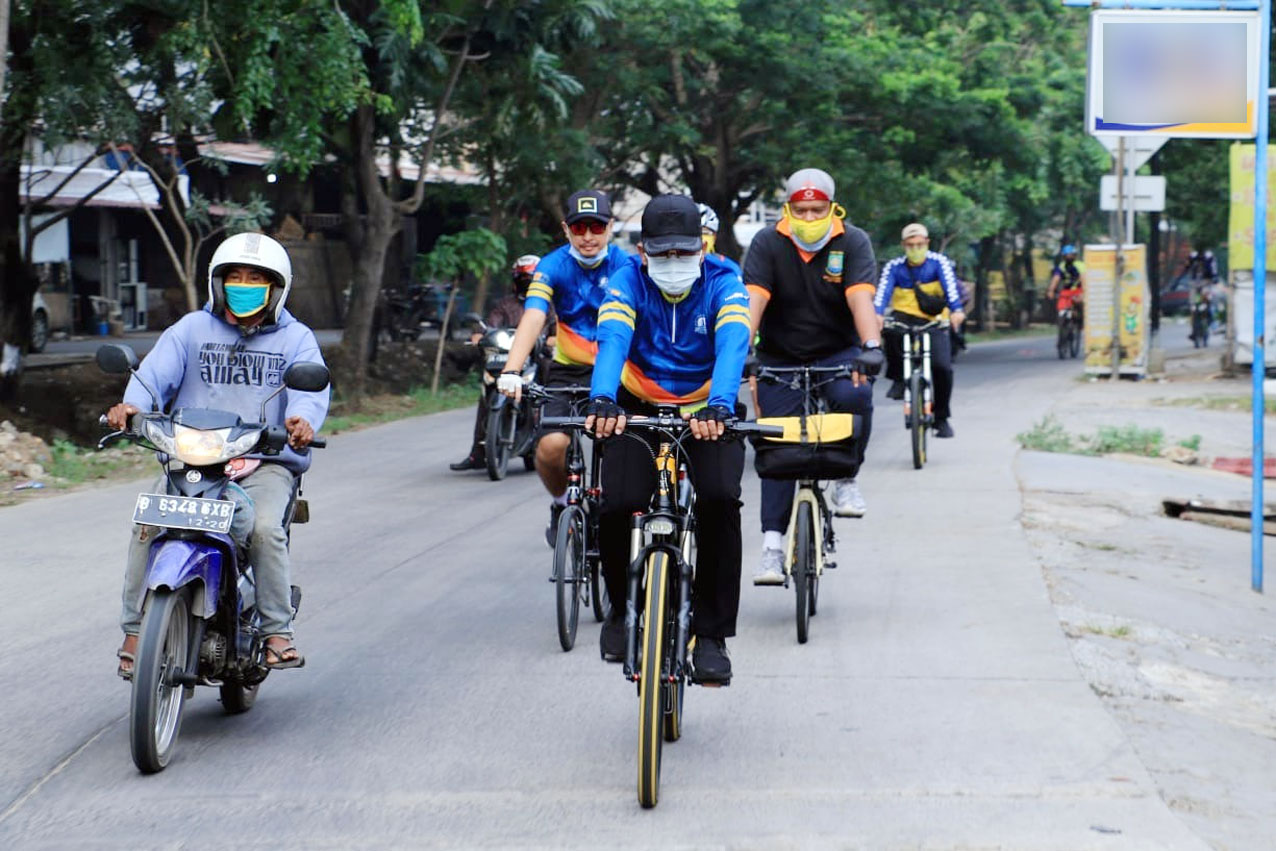 Wakil Walikota Pantau Langsung Sosialisasi Massal Protokol Kesehatan di Cipondoh Sambil Bersepeda