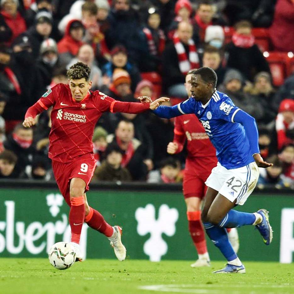 LIVERPOOL – Duel seru tersaji dalam laga Liverpool vs Leicester City di perempatfinal Piala Liga Inggris 2021-2022.