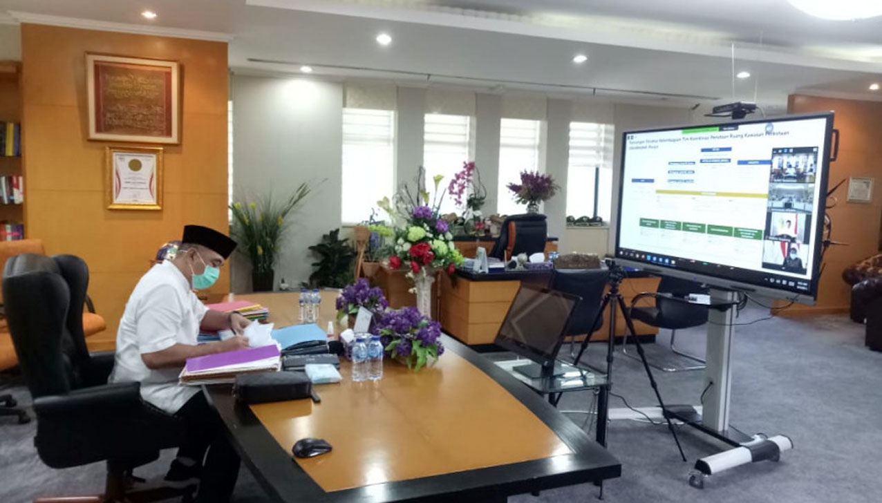 Metrobanten, Tangerangm – Bupati Tangerang Ahmed Zaki Iskandar mengikuti rapat koordinasi pemantapan kelembagaan tim koordinasi penataan ruang kawasan perkotaan Jabodetabek-Punjur secara virtual. Bupati Zaki ikuti rapat tersebut di ruang kerja Bupati Tangerang. Jumat, (4/9/20).